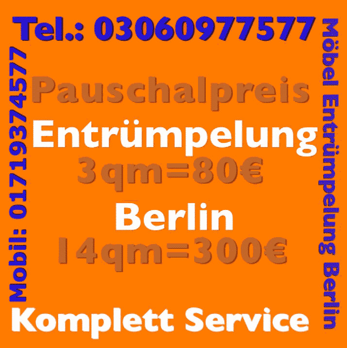 Türmen sich im Wohnung, Abstellraum oder in anderen Räumen jeden Menge Sperrmüll, alte Möbel anderweitige Gegenstände, die künftig nicht mehr benötigt werden, muss eine gründliche Entsorgung her. Wir bietet alle erforderlichen Arbeiten zum günstigen Komplettpreis. Im Wohnungsauflösung Angebot enthalten sind alle Leistungen von der Anfahrt über das Ausräumen bis hin zum Abtransport und der Entsorgung beim BSR. Buchen Sie uns - Sperrmüllabholung sind mit unserem erstklassigen Service, jede Menge Praxiserfahrung viel Können im gesamten Raum privat 03060977577 für Ihnen da!